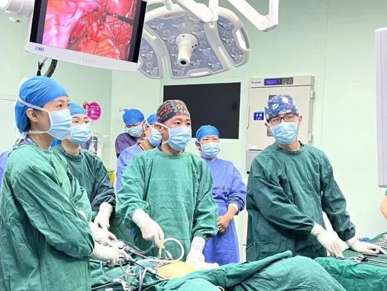 引领创新、探索前沿,团队弃用传统举宫装置,在切除子宫之前环扎阴道,在子宫切除后以蒸馏水灌注腹腔,降低术中肿瘤播散的发生率。