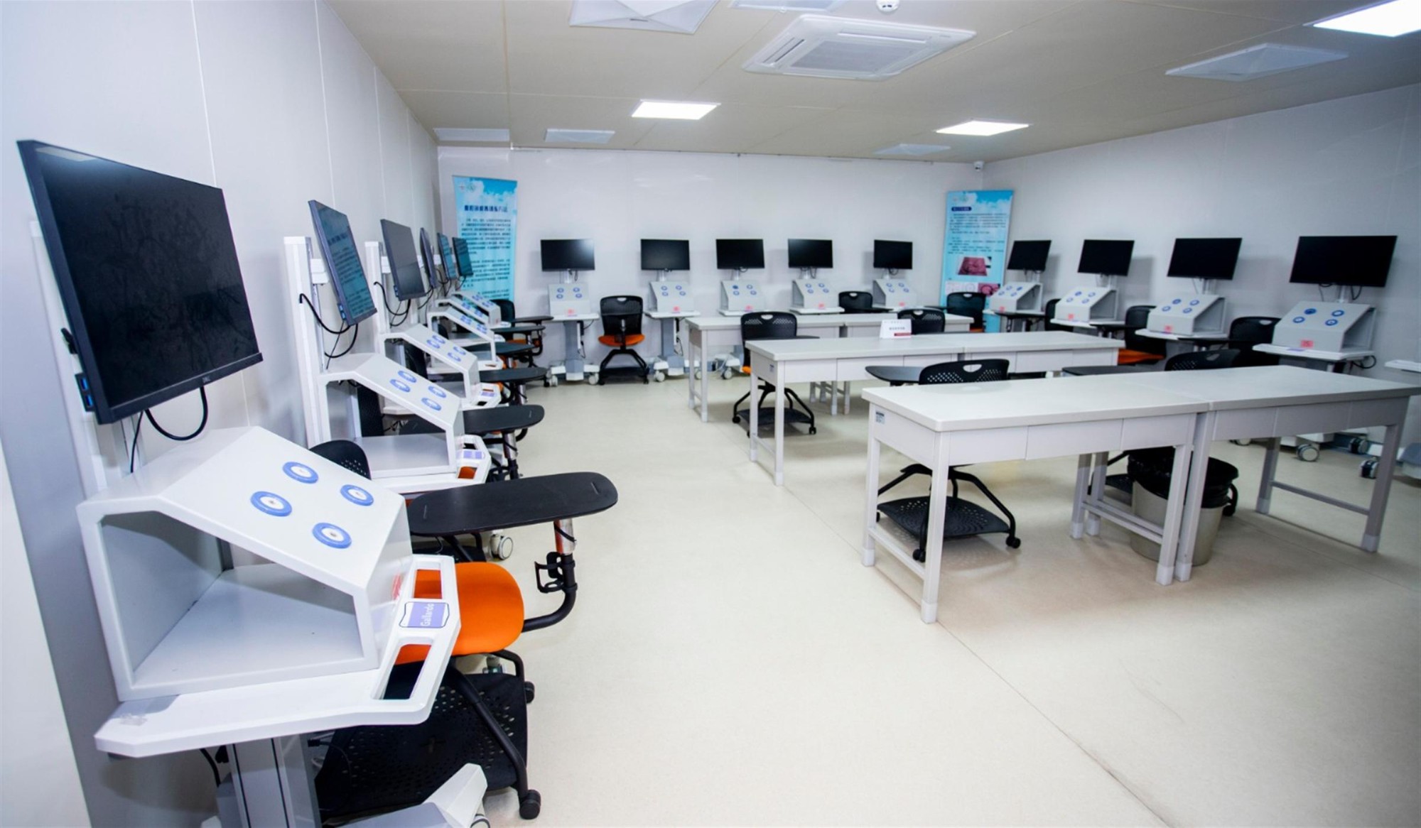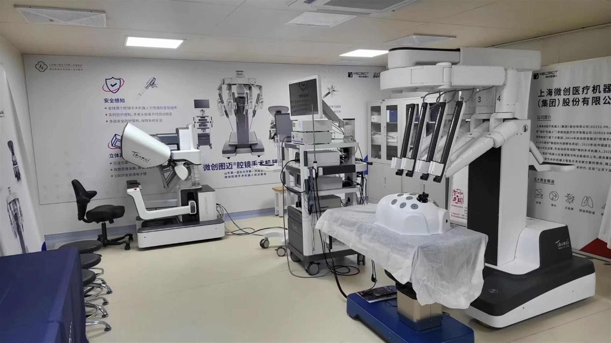 山东第一医科大学第一附属医院腔镜培训中心占地600余平方米,配备腔镜模拟训练室,装备模拟训练器20套;配备腔镜手术机器人训练室,拥有先进的图迈腔镜手术机器人1台以及腹腔镜手术模拟训练系统机器人1台;超高清4K多媒体教室,实时转播手术室内容进行教学;标准化动物手术间,装配全套高标准手术室设备,4K超高清腹腔镜等,可同时进行3台大型动物腔镜实操。培训设备先进,功能齐全。