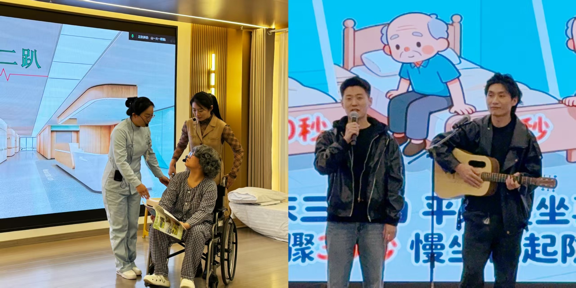 最后,案例分享环节的的跌倒情景剧“趴趴酱碰壁记”与说唱“平安走,慢慢走”,成为会议点睛之笔,让跌倒预防知识在生动有趣中深入人心。