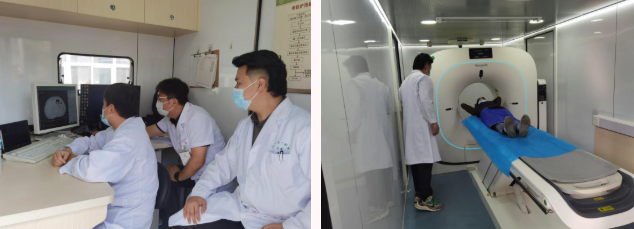 车载CT设备成为此次活动的一大亮点,吸引众多村民前来检查。大家纷纷表示,能在家门口享受到如此大型便利的医疗服务,感到非常温馨。当天,该设备共为近50人完成影像检查,筛查出5例高危病例。胸外科与放射科专家现场联合阅片,给出初步诊断结果,同时为高危病例提供个性化诊疗建议。