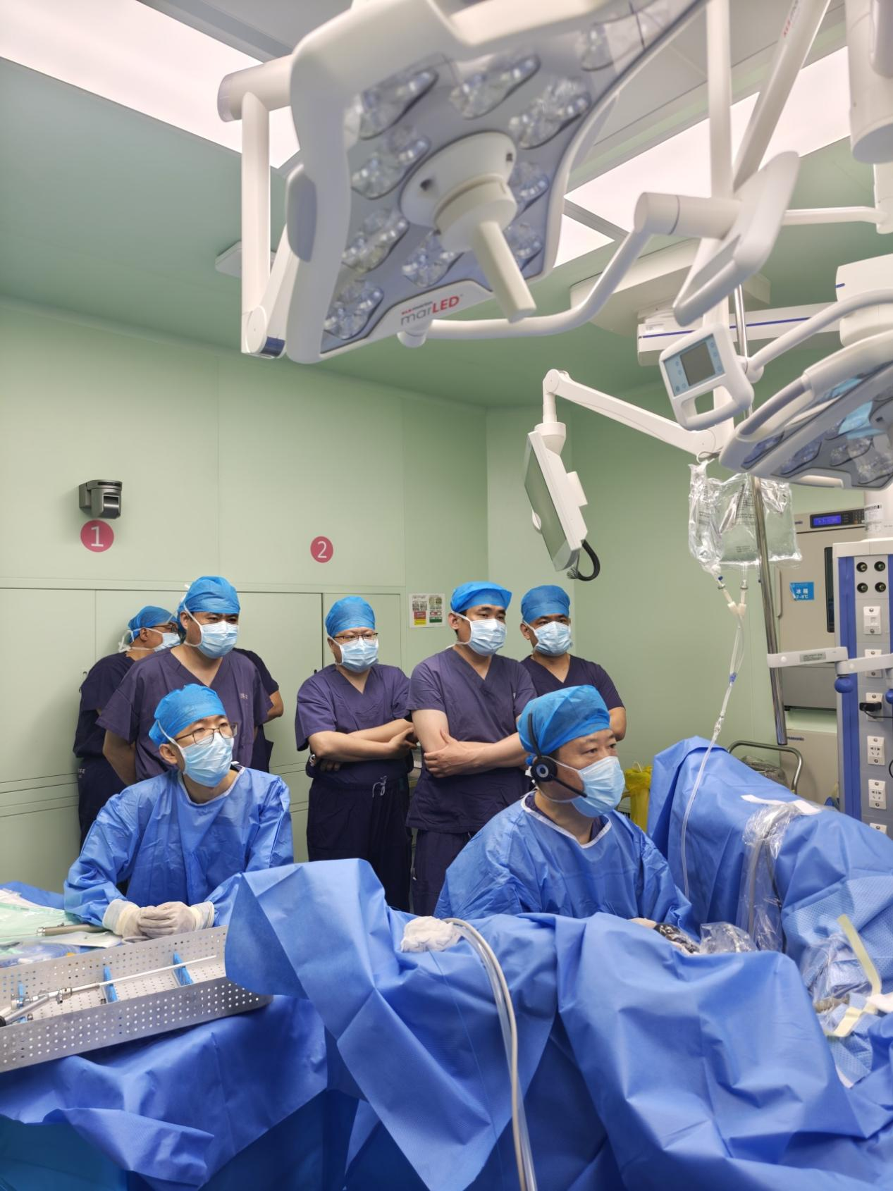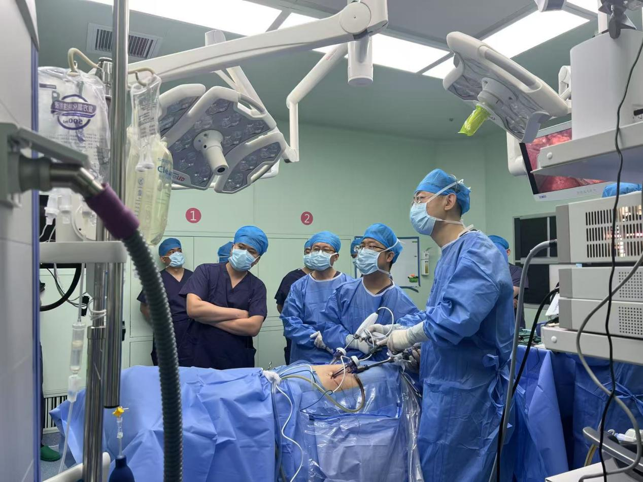 第二场手术由刘荷臣指导孙泽强医师进行血友病病人膀胱结石碎石取石及前列腺电切。病人情况特殊,孙泽强医师临危不乱,精准高效碎石,同时行经尿道前列腺电切,术中几无出血,术后引流通畅清亮,展现了我院高质量的人才梯队培养。